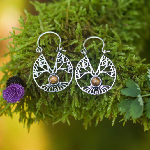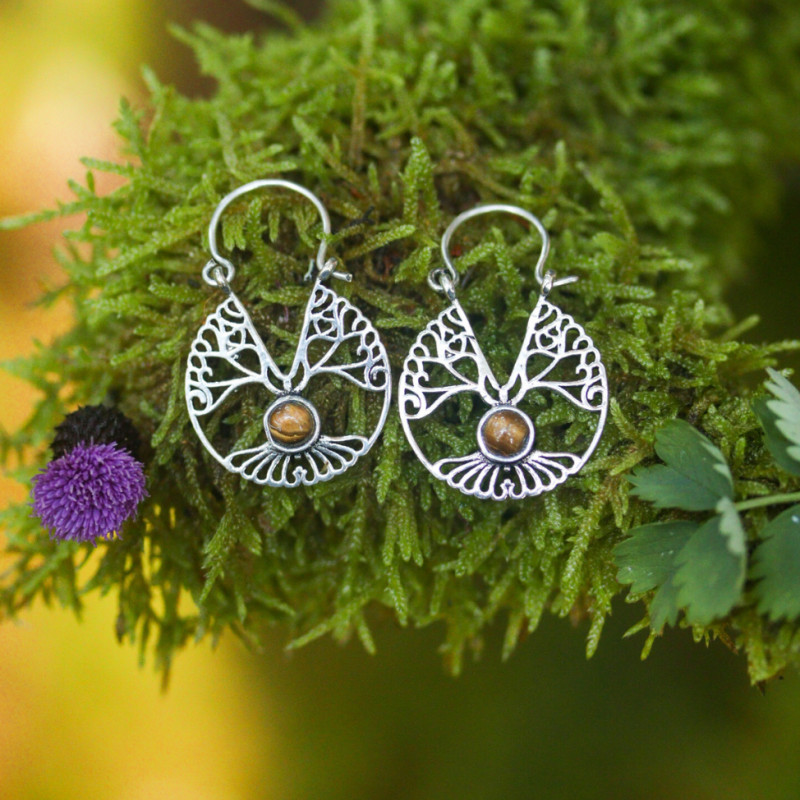 Tree of life earrings with eye of tiger