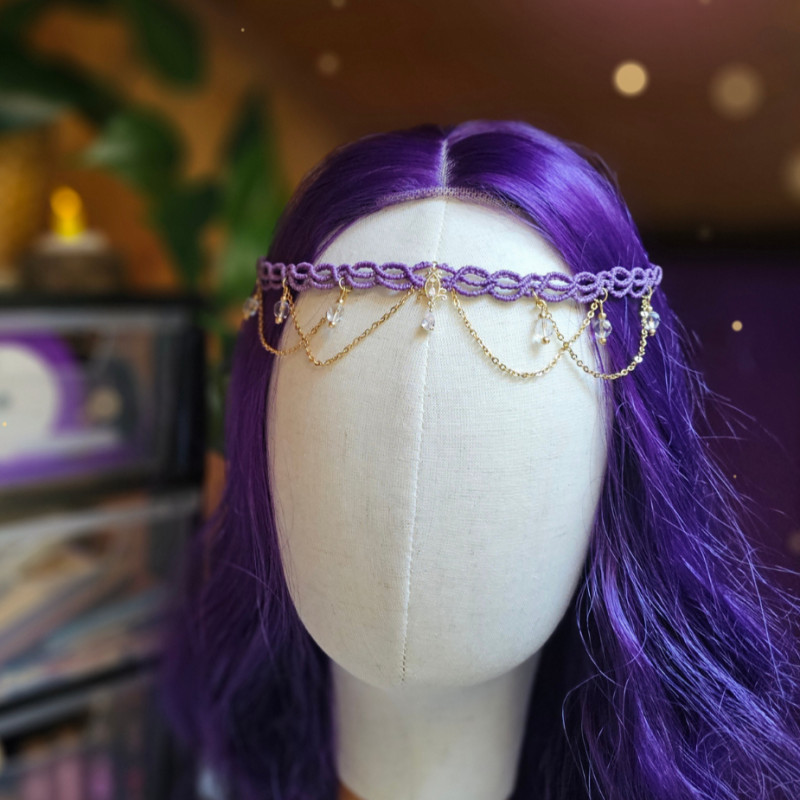 Hëlwă est une création délicate, tissée à la main, pensée comme un ornement féerique à porter selon tes envies : en diadème pour une allure enchantée de p'tite fée, ou en ras-de-cou pour qqch de plus discret & de magie au quotidien.