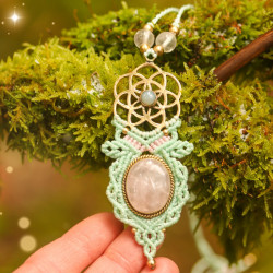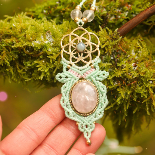 Pendentif Graine de vie & Quartz rose