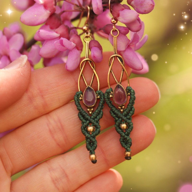 Boucles-d'oreilles elfiques avec pierres naturelles